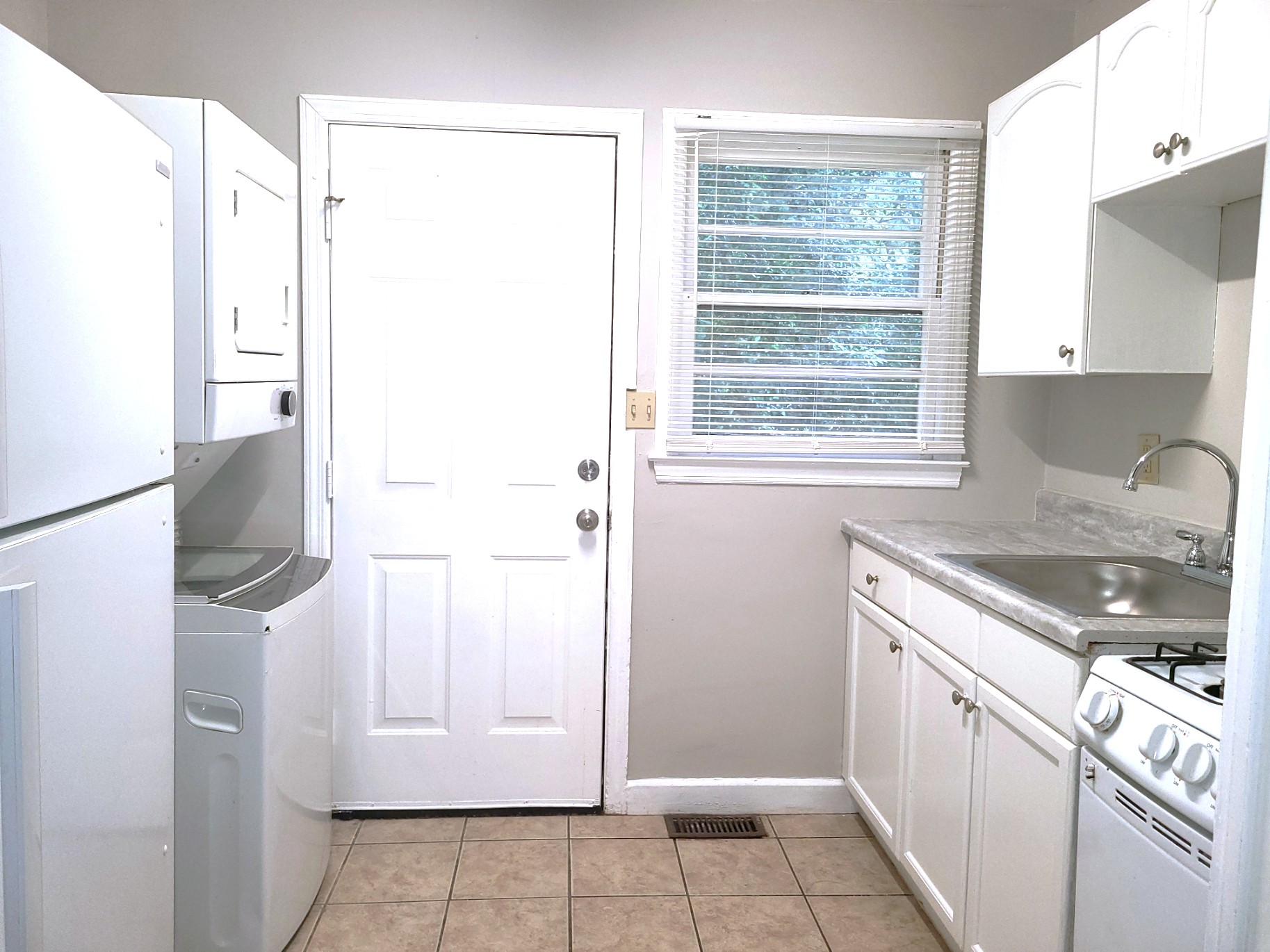 Duplex. 2 Bedrooms, 1 Bathroom, Central A/C, Gas Range, Refrigerator, Washer/Dryer (stacked), Pets under 20 lbs - $300 pet fee.